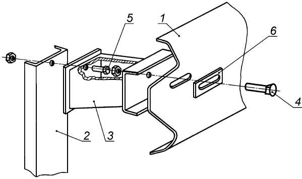 1 - балка; 2 - стойка; 3 - консоль жесткая; 4 - болт М1645.5.8; 5 - болт М1630.5.8; 6 - шайба 80404 мм